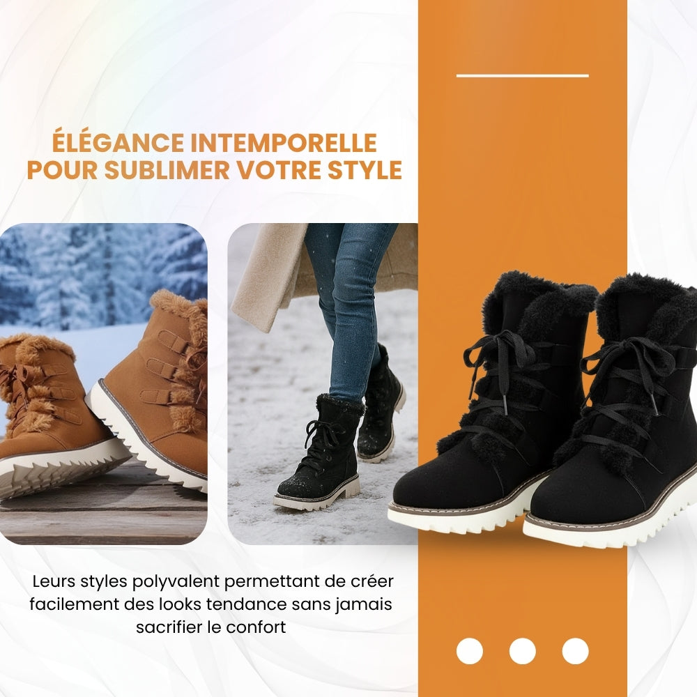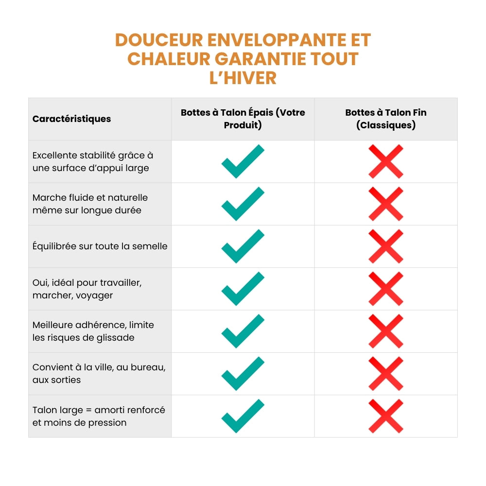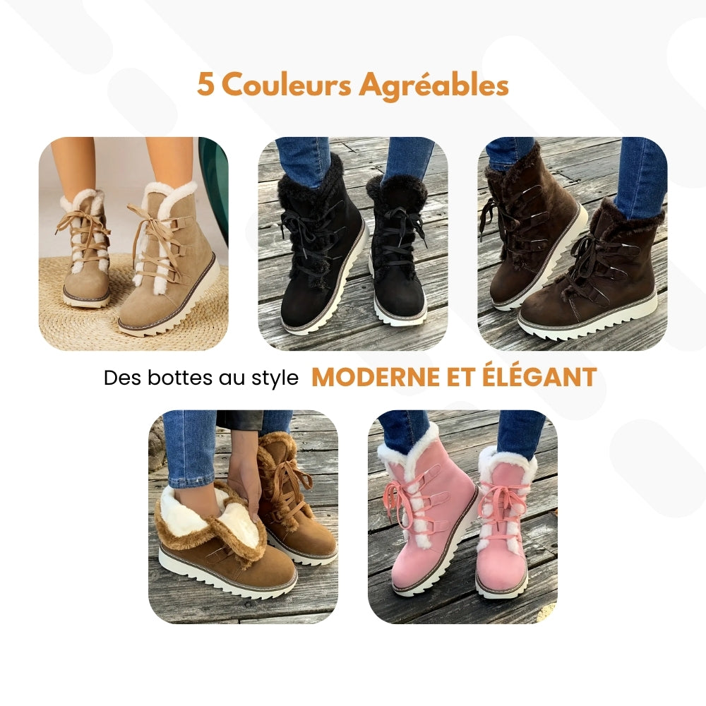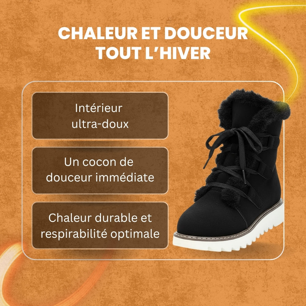 Pensées pour affronter les températures basses avec sérénité, ces bottes sont dotées d’une doublure intérieure ultra-douce façon fourrure peluche. Cette matière moelleuse entoure le pied comme un cocon, procurant une sensation immédiate de bien-être. Leur isolation thermique permet de conserver durablement la chaleur, même durant les journées les plus froides, tout en assurant une respirabilité agréable pour éviter la sensation de pieds étouffés.