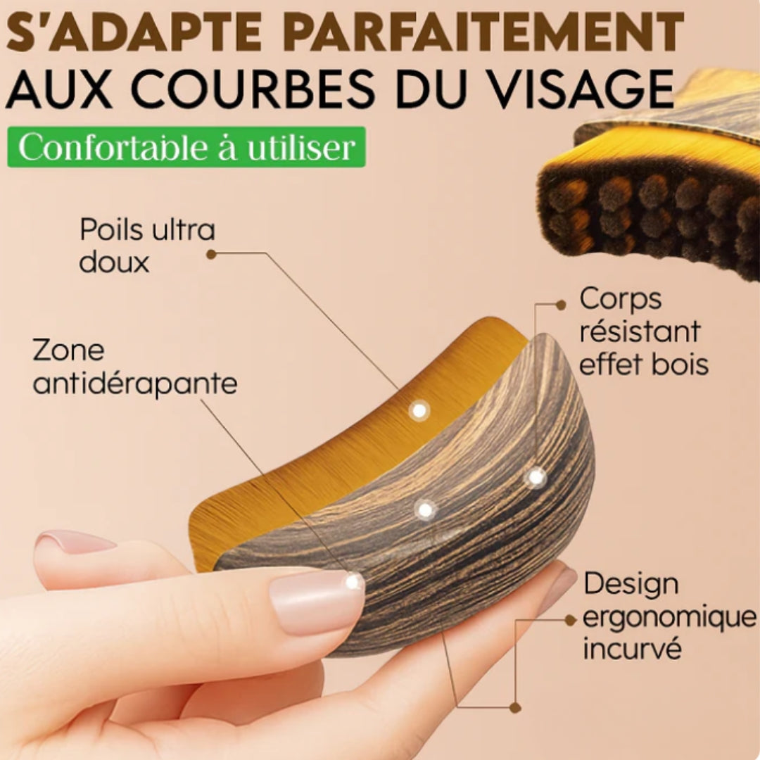 Pensée pour épouser parfaitement les courbes du visage, cette brosse allie esthétisme et praticité. Avec une forme incurvée, elle tient naturellement en main. Sa finition effet bois apporte élégance et confort, tandis que la zone antidérapante empêche tout glissement, rendant chaque geste fluide et agréable. Les fibres poly ultra-douces, testées dermatologiquement, respectent les peaux les plus sensibles tout en procurant une stimulation douce et efficace, sans huile ni crème.