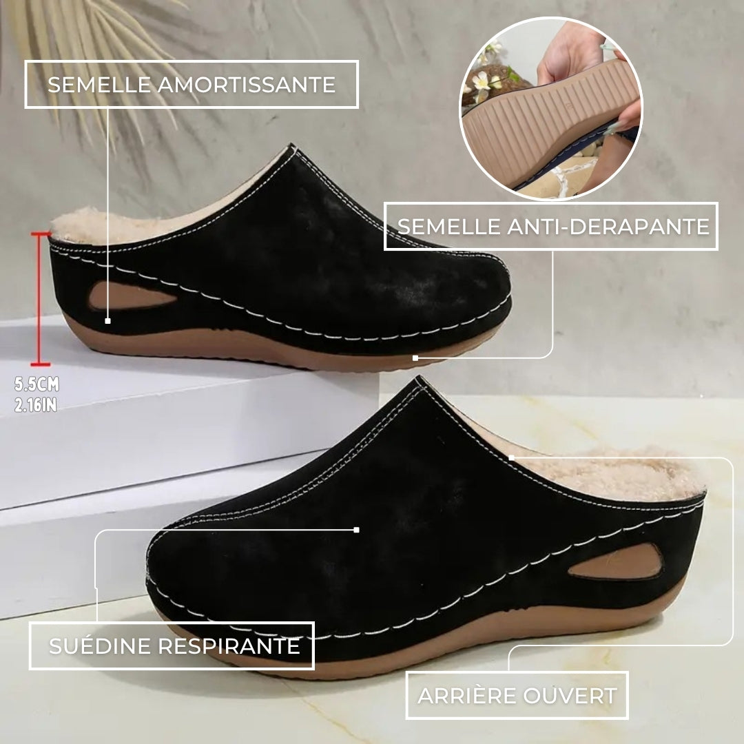Dès que vous glissez vos pieds à l’intérieur, ces mules douillettes offrent une sensation immédiate de confort et de chaleur grâce à leur semelle intérieure garnie de fourrure synthétique. L’épaisse doublure enveloppe doucement le pied, procurant un effet cocooning dès les premiers instants. La surface moelleuse limite les frottements, permettant de les porter longtemps sans gêne. Ces chaussures sont idéales pour garder les pieds au chaud tout l’hiver et devenir rapidement un indispensable de vos journées froides. Elles transforment chaque pas en un vrai moment de douceur et de plaisir.