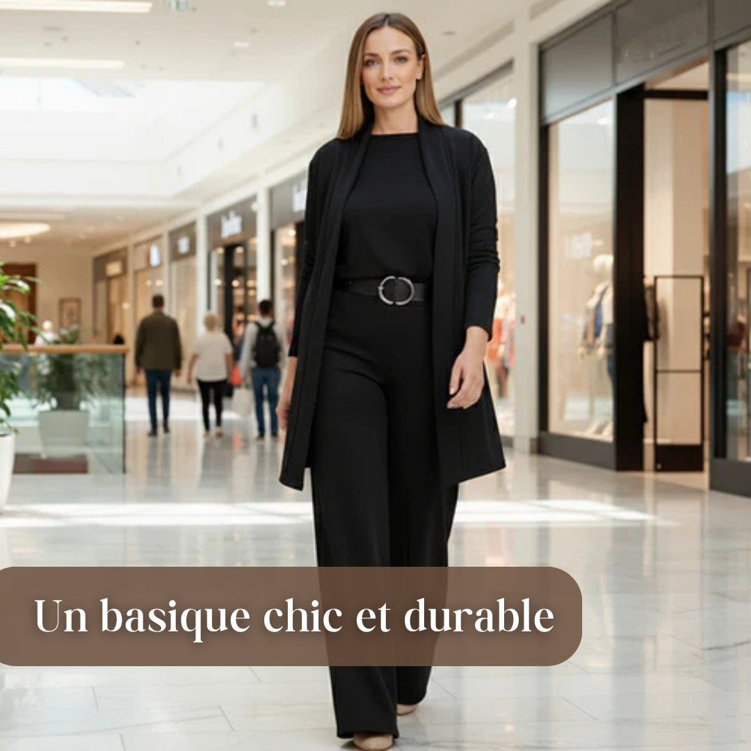 Conçu dans un tissu luxueux, cet ensemble offre une fluidité naturelle qui épouse vos mouvements avec élégance. Sa matière respirante, élastique et ultra-douce procure une sensation de confort incomparable, idéale pour un port quotidien. De plus, sa finition anti peluches garantit une tenue impeccable et raffinée au fil du temps.