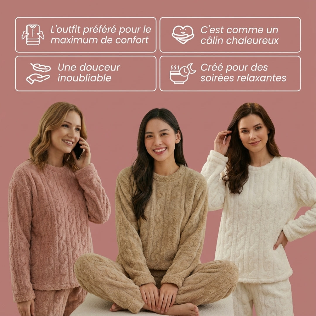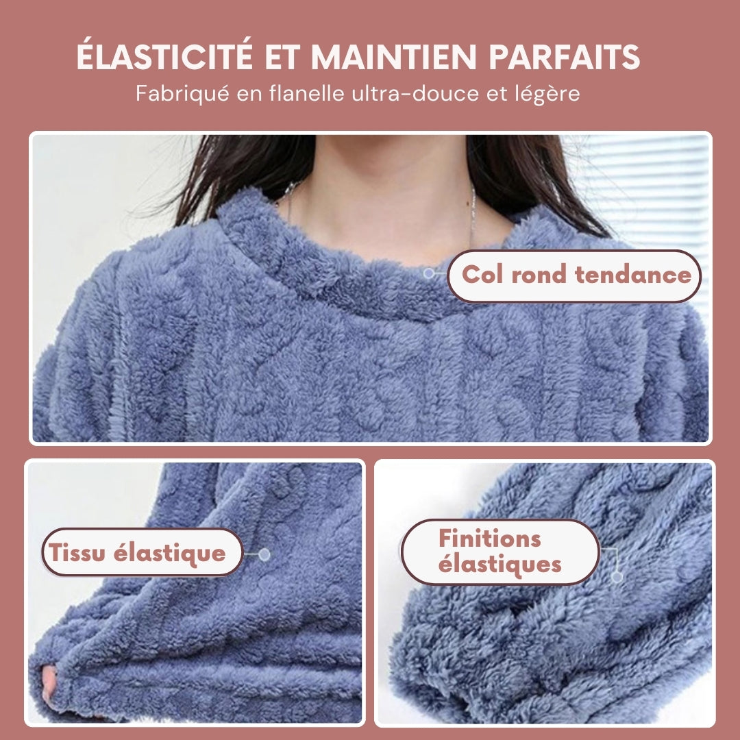 Confectionné dans un mélange exclusif de flanelle ultra-douce, cet ensemble enveloppe le corps d’une douceur inoubliable dès qu’on l’enfile. Sa matière lisse, légère et chaleureuse procure une sensation immédiate de bien-être, comme un véritable câlin réconfortant qui apaise et détend. Créé pour les soirées relaxantes, il accompagne parfaitement les moments de calme, les instants cocooning et les temps de repos à la maison, tout en offrant un confort absolu qui se maintient lavage après lavage.