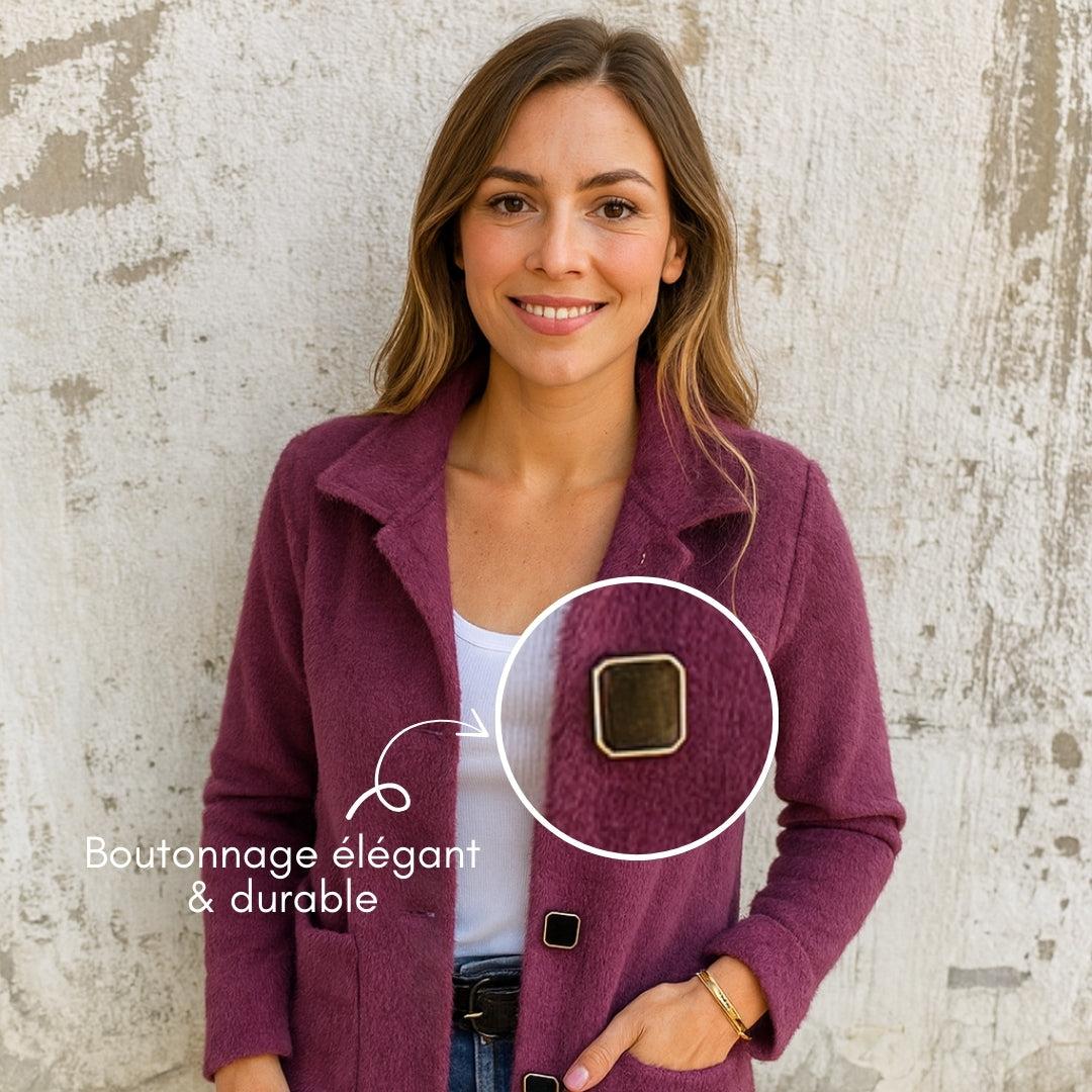 Ce manteau se distingue par son boutonnage simple et élégant, qui assure un maintien pratique tout en renforçant son style minimaliste. Contrairement aux fermetures à colle ou à scratch peu durables, ses boutons solides garantissent une utilisation longue durée et une fermeture fiable jour après jour. Un détail classique qui allie esthétisme et fonctionnalité.