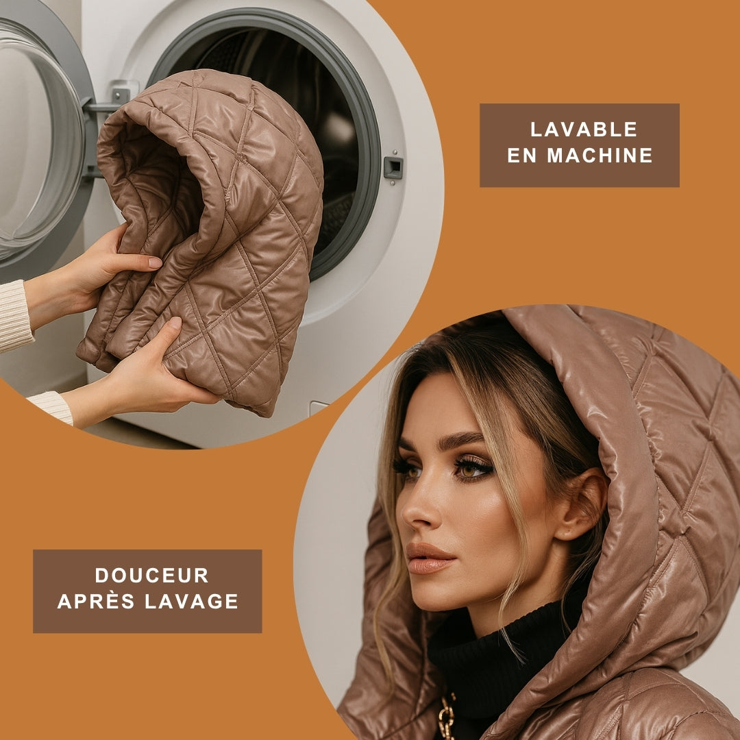 Bravez l’hiver avec confiance et style. Ce manteau allie une coupe féminine raffinée à une protection optimale contre le froid.Sa longueur enveloppante et sa conception matelassée assurent une isolation homogène tout en sublimant la silhouette.Chaque détail des finitions soignées à la capuche protectrice a été pensé pour offrir une allure chic sans renoncer au confort.